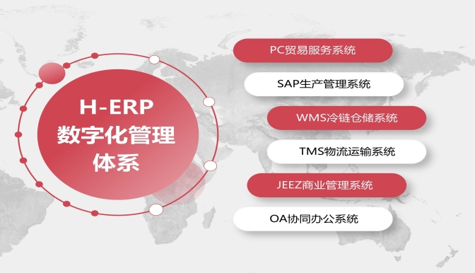 以信息化賦能集團管理,搭建數字化PC(P10 Cloud)貿易服務系統、SAP生產加工系統、WMS冷鏈倉儲系統、TMS物流運輸系統、JEEZ商業管理系統、OA協同辦公系統,構建H-ERP數字化管理體系,以科技驅動為農業全產業鏈提升附加值,以精細化管理促進決策加速。
